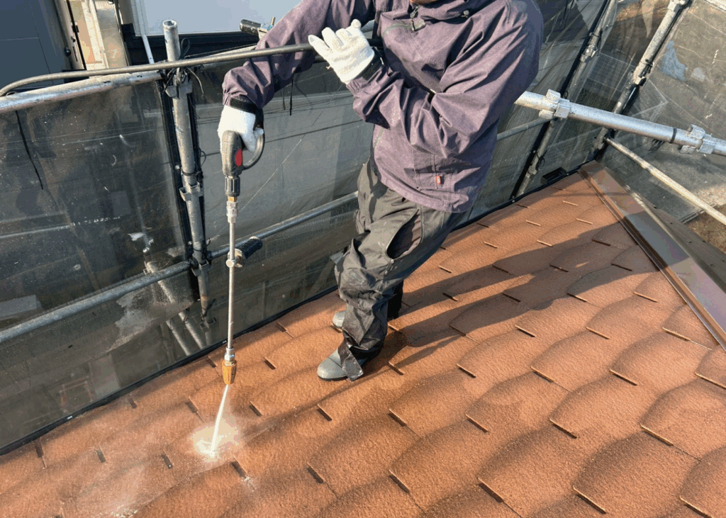 コーラルリーフでは、屋根材の状態を見ながら水圧を調整し、
